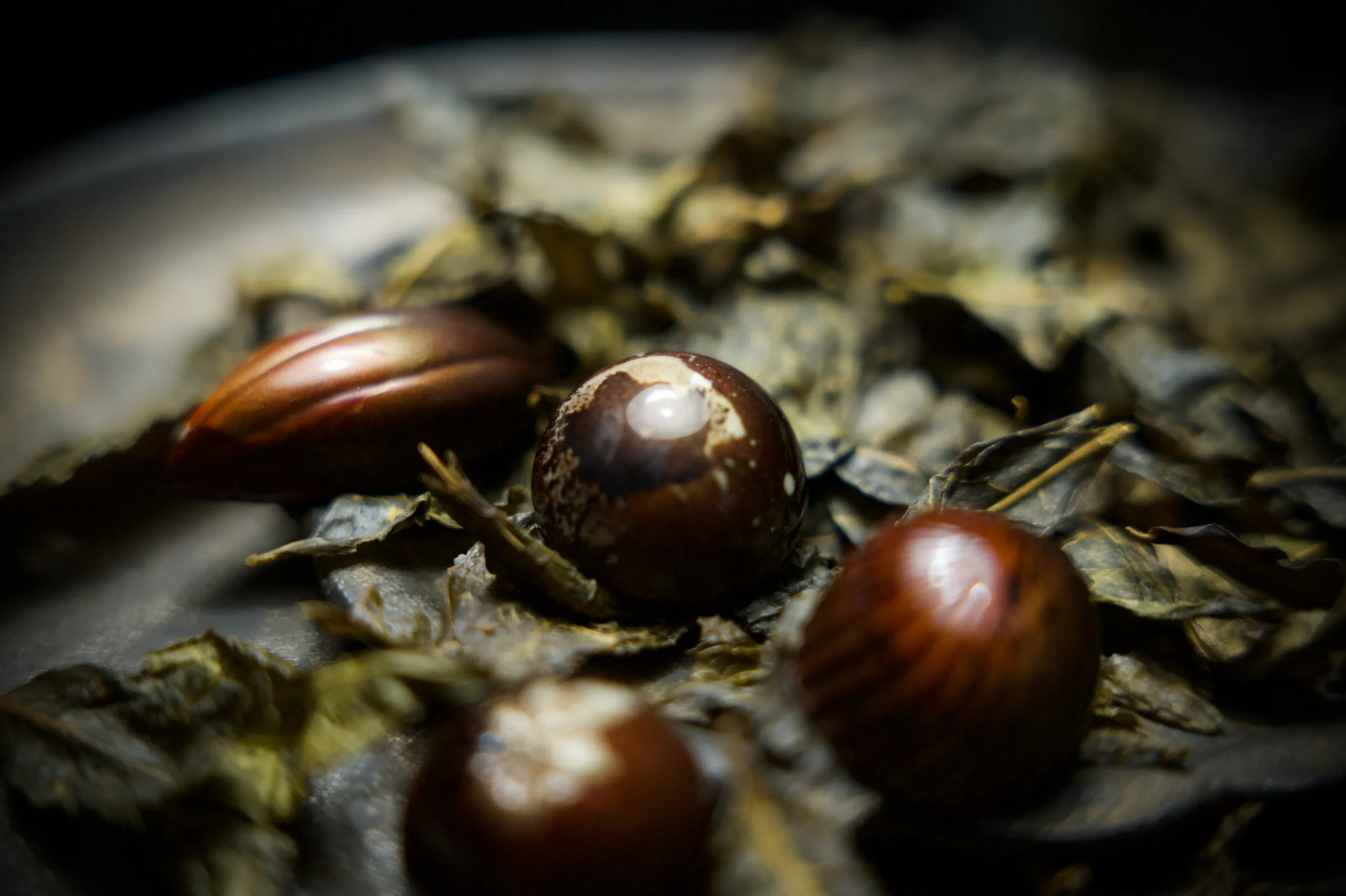 畑に立つと、肌で感じる空気も、人の距離も、時間の流れもどこか穏やかで、幼い頃に日常として飲んでいた晩茶の感覚が身体の奥から静かに呼び起こされます。相生晩茶の大きなリーフの形や、手触り、香りは、味覚以上にこの土地の空気を映し出す。だからこそ、JHOICEもまたチョコレートを通してこの相生という場所へと繋がる五感の振動を届けたいと思います。